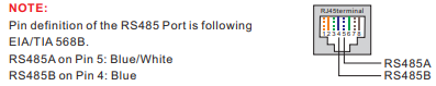 Pin layout for RS485 Inverter-EMS connection