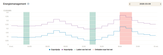 Gebruikers kunnen opmerken dat hun batterij op specifieke tijden van het net oplaadt, zelfs als er geen direct hoog verbruik is, of vragen zich af waarom er een groen blok in hun energiebeheer-overzicht is verschenen.